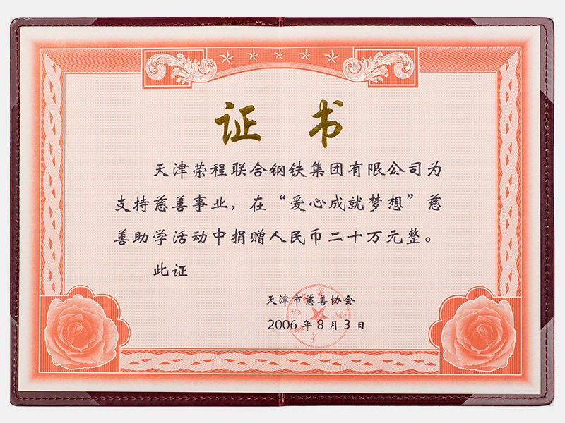 在“愛心成就夢想”慈善助學活動中捐贈人民幣二十萬元整